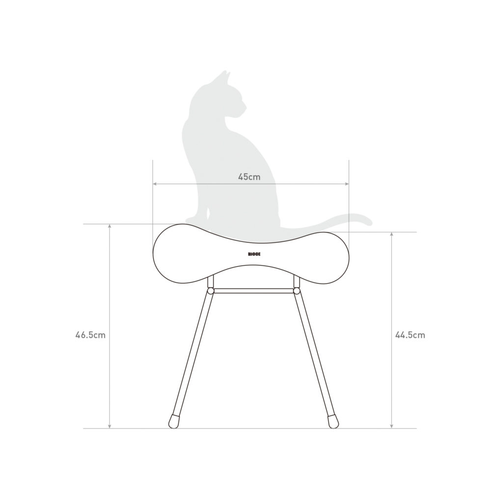 Max・Midi・Miniの全サイズ共通で、高さは約46.5cm。猫が無理なく飛び乗れ、動きの流れの中で自然に使える高さに設計しています。