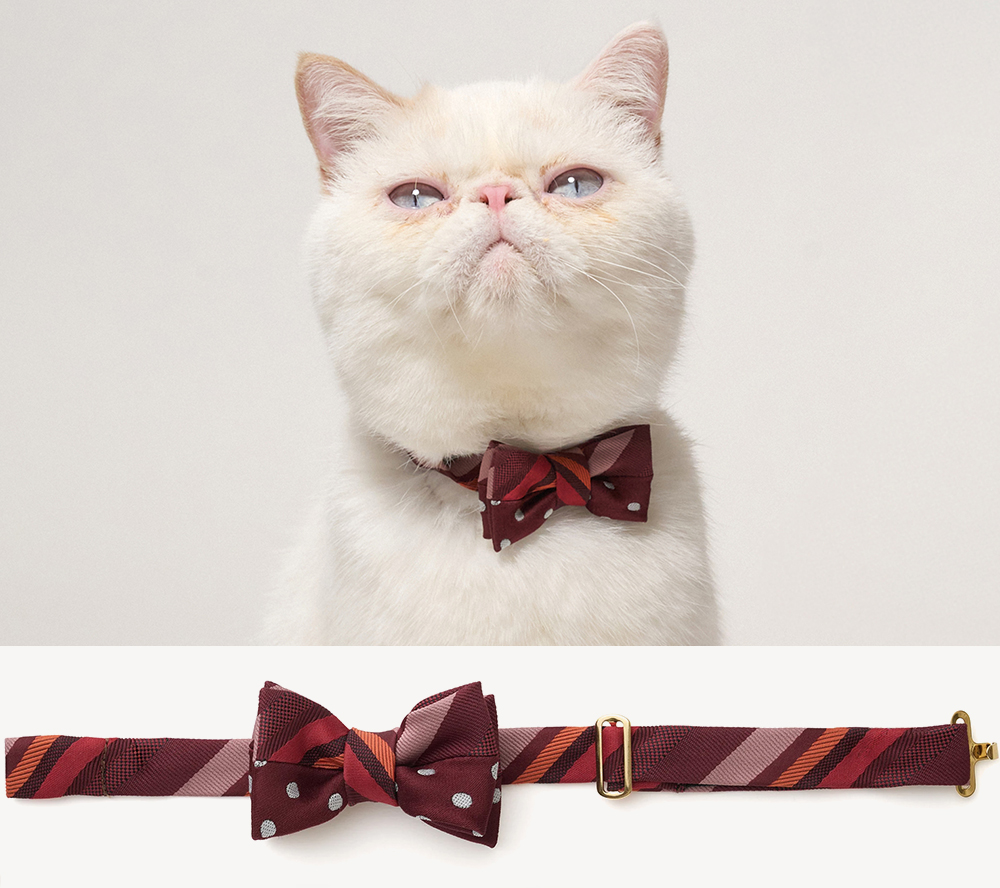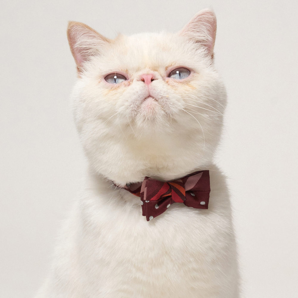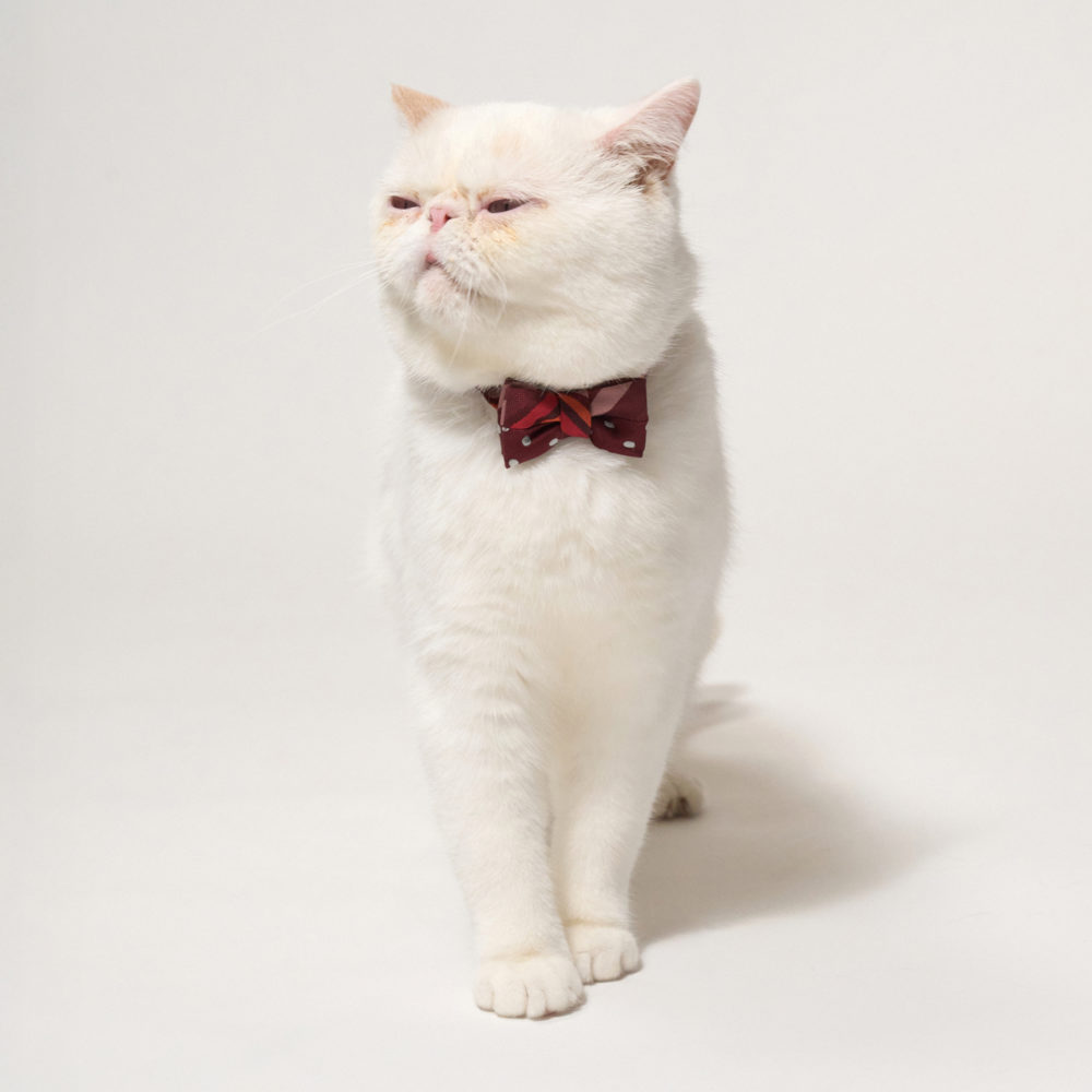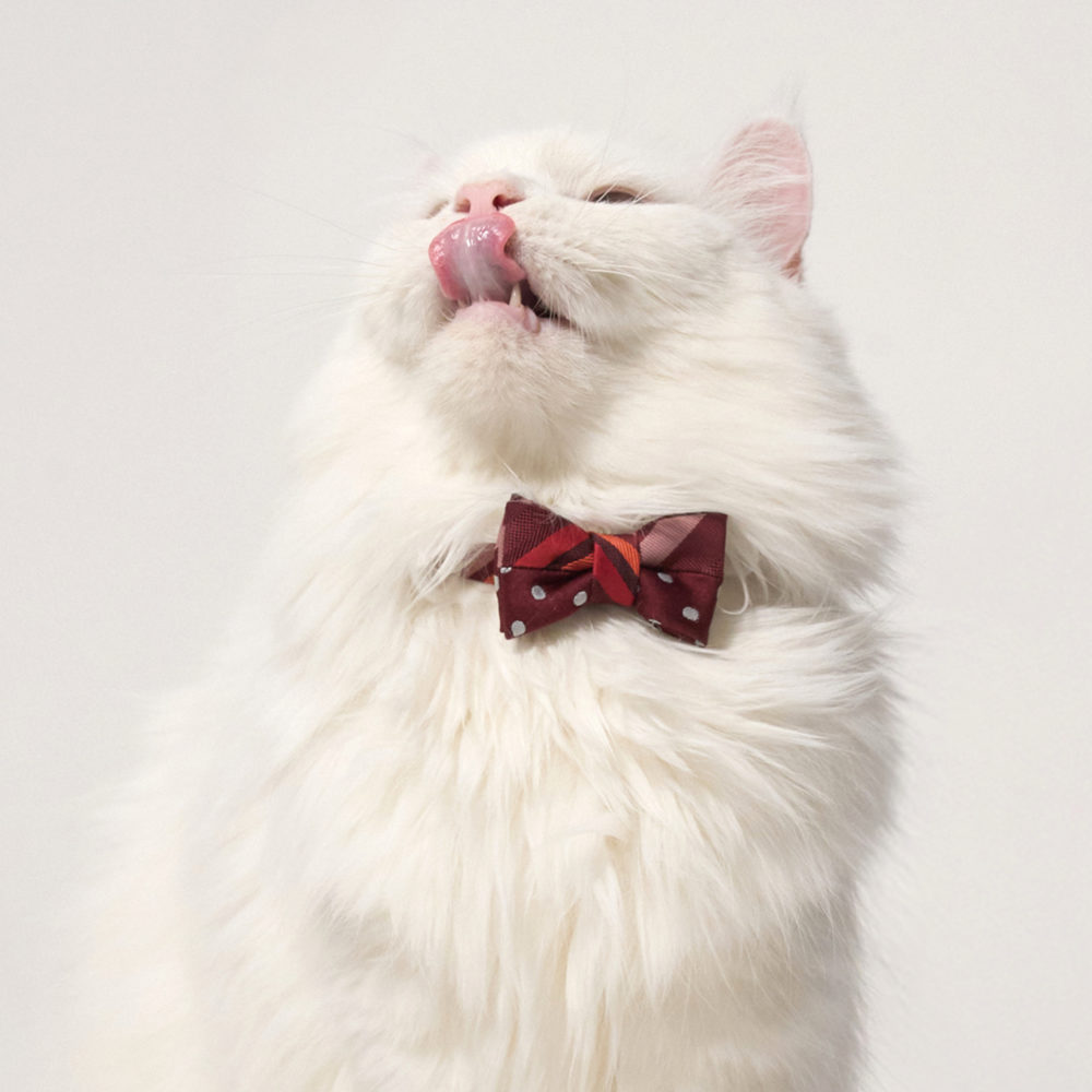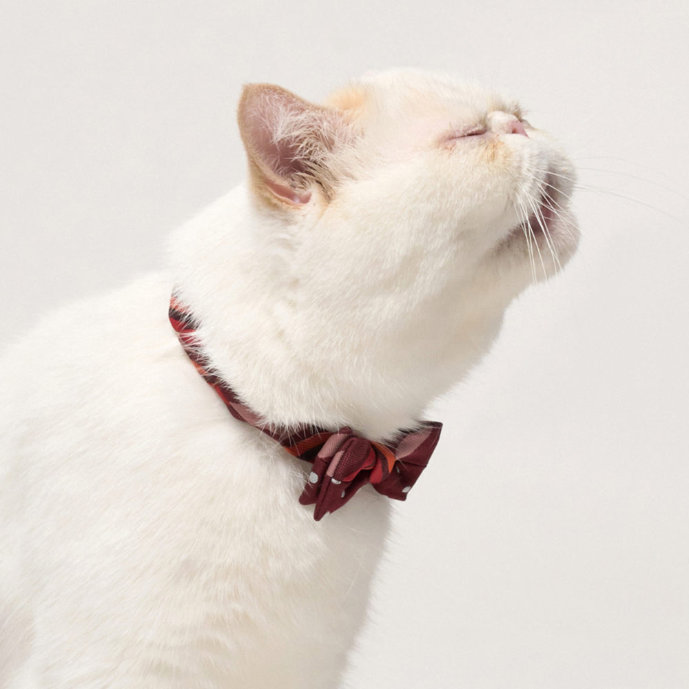 本シリーズは、ネクタイブランド「giraffe(ジラフ)」と対話を重ねながら生まれた、愛猫のためのちょっと贅沢な蝶ネクタイコレクションです。