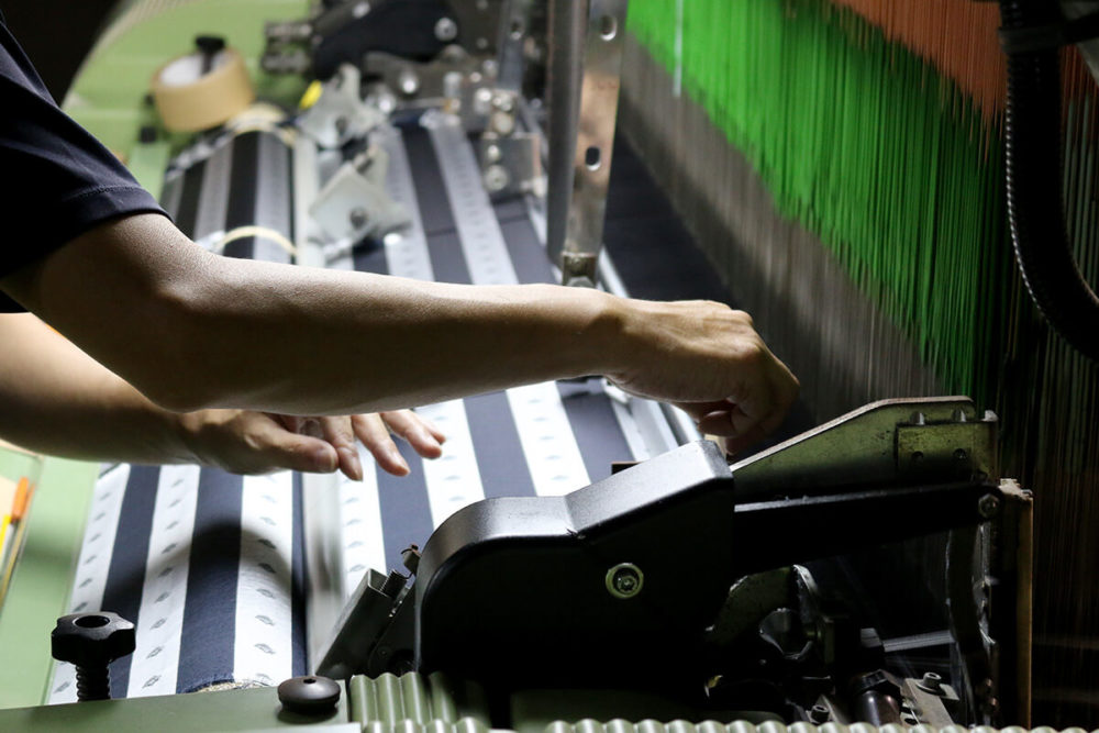 京都市内から車で数時間、山あいに佇む織物工場では、織り機の音が静かな風景の中に響き続けています。